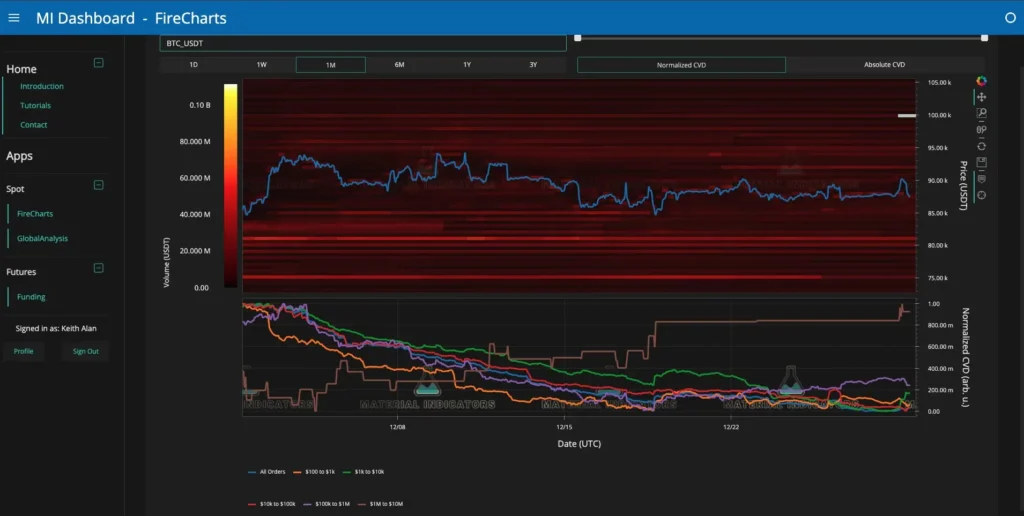 Material Indicators는 파이어차트를 통해 비트코인 100K 매도벽이 무려 1억 1,100만 달러 규모로 쌓여 있음을 공개했습니다. 차트 상단에 선명하게 그어진 붉은 선은 투자자들에게 엄청난 심리적 압박을 줍니다. 하지만 분석가는 이 비트코인 100K 매도벽이 실제로 체결될 의도가 없는 허수 주문이라고 단언합니다.
