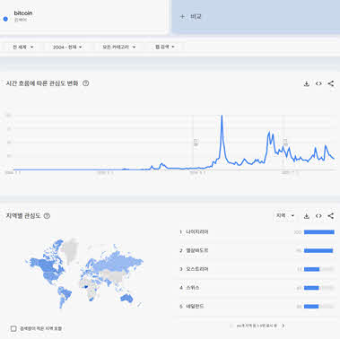 BITCOIN이라는 검색어의 관심도는 매우 낮아져있는 모습입니다. 관심도로만 보면 2022년 하락장 당시와 유사한 모습입니다. 그만큼 관심도가 낮아져있는 상태이죠.